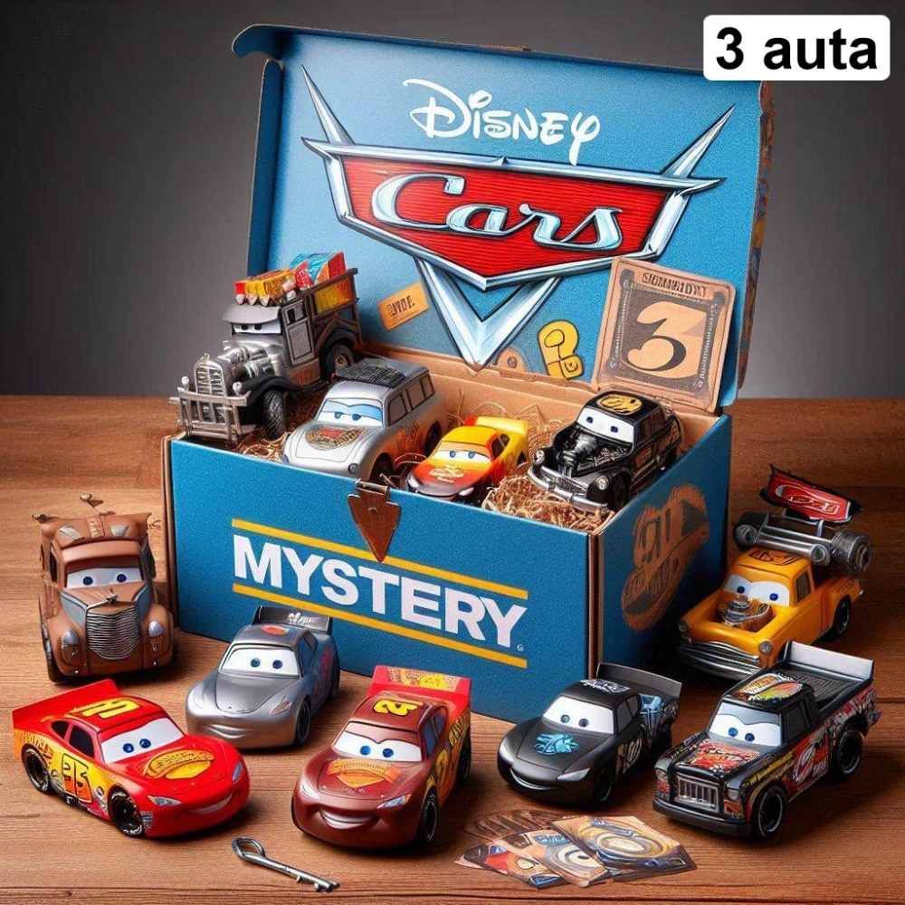 Mystery Box obsahuje 3 náhodně vybrané modely autíček Cars.